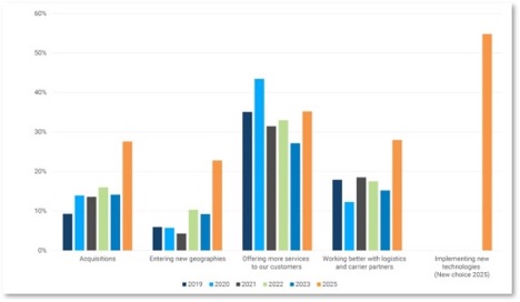 På trods af stigende global ustabilitet (60 procent), toldændringer (42 procent) og prispres fra kunder (61 procent) ser 67 procent af speditører og toldkonsulenter teknologi som en vigtig drivkraft for fremtidig vækst. Over halvdelen (55 procent) siger også, at investering i ny teknologi er deres primære strategi for at opnå konkurrencemæssige fordele.