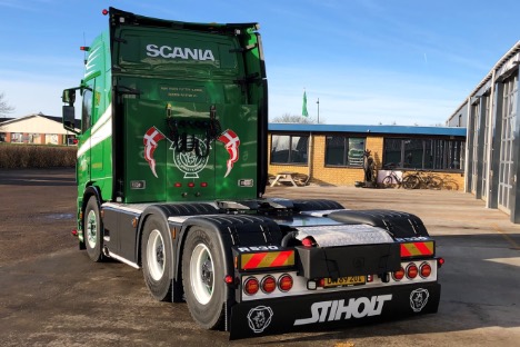 Den nye Scania er også en tandemtrækker med navreduktion - en R 530 A6x4, der er godkendt til specialtransport med op til 150 tons vogntogsvægt. At det blev en Scania, kan Stiholt takke chauffør Jonas Hangaard for.