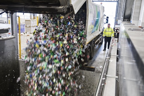 Pantemballager aflæses til sortering hos Dansk Retursystem (Foto: Ty Stange)