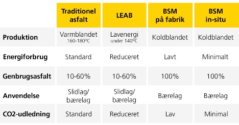 Ved at kombinere et bærelag i BSM med et slidlag i LEAB opnår man ifølge Arkil A/S en halvering i det samlede klimaaftryk fra produktionen af belægning til en ny cykelsti.