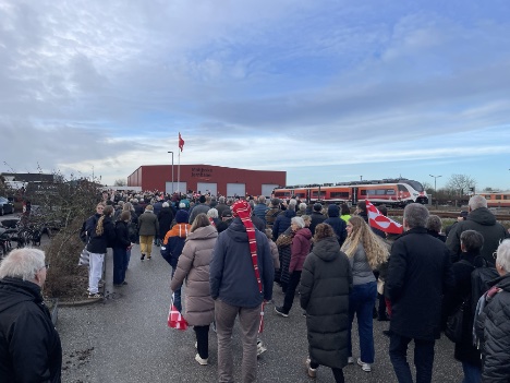 Borgere i Lemvig tog mod nyt batteri-eletrisk tog med Kong Frederik X om bordFredag 19. december 2025 kl: 14:33 Af: Jesper Christensen![]() Flere hunderede borgere fra Lemvig - store og små, unge og gamle, yngre og ældre - var sammen med folk fra andre egne af landet mødt op på Lemvig Station, da Midtjyske Jernbaner officielt indviede sine syv nye batteri-elektriske tog fredag. Få minutter efter planmæssig ankomst kørte et særtog ind på Spor 1 på Lemvig Station med Kong Frederik X om bord sammen med andre inviterede gæster Togturen var begyndt i Holstebro, hvor ved 10-tiden blev holdt taler af blandt andet transportminister Thomas Danielsen, som kalde det for historisk, at det første batteritog officielt bliver sat drift på statens jernbane. - At det sker i Vestjylland, er blot ekstra glædeligt. Midtjyske Jernbaner har helt fra begyndelsen været fremsynede og aktive for at få det her til at ske, og i tæt samarbejde med Banedanmark kan vi nu sætte strøm til, til glæde for passagererne i området, som får tog i absolut topklasse, sagde Thomas Danielsen. ![]() I Lemvig blev der serveret æbleskiver med tilbehør. Midtjyske Jernbaner har indkøbt syv nye Siemens Mireo Plus B batteritog, der skal erstatte selskabets gamle dieseldrevne og efterhånden slidte Y-tog, som har kørt på de vestjyske baner siden 1983. Banedanmark fornyede i sommeren 2025 strækningen mellem Skjern og Holstebro, og med etableringen af Banedanmarks to nye ladeanlæg på Holstebro og Skjern stationer kan Midtjyske Jernbaner inden længe lade de nye batteritog - og lade dem køre i fuldt omfang på skinnerne mellem Skjern og Holstebro og på skinnerne mellem Vemb, Lemvig og Thyborøn. - Det er mere end bare et nyt tog, vi fejrer i dag. Det er en ny begyndelse og et stort skridt i retning mod en grønnere fremtid for jernbanen, hvor elektricitet erstatter diesel. Midtjyske Jernbaner har vist visionær vedholdenhed i arbejdet med at indsætte batteritog i Danmark, og jeg ønsker dem stort tillykke med bedriften og takker for det gode samarbejde. At vi får den første statslige batteritogsstrækning, kommer til at give Banedanmark værdifulde erfaringer i arbejdet med at gøre endnu flere strækninger klar til batteritog, sagde administrerende direktør i Banedanmark, Peter Jonasson. I begyndelsen af det nye år vil Midtjyske Jernbaners batteritog erstatte de gamle dieseltog - fire Y-tog og fire noget nyre Desiro-tog. Ladeanlægget i Skjern er endnu ikke meldt klar, men når det er sket, kan batteritogene komme i fuld drift på Midtjyske Jernbaners strækninger. - Danmarks første batteritog er ikke bare et tog – det er et symbol på forandring. Et tog, der reducerer CO2-udledningen markant, og som giver vores passagerer en rejseoplevelse, der er komfortabel, stille og fremtidssikret. Det er et bevis på, at vi kan kombinere teknologi og ansvarlighed og skabe løsninger, der gavner både mennesker og miljø, sagde direktør i Midtjyske Jernbaner, Martha Vrist. Det er en del af Infrastrukturplan 2035, at hele den statslige togtrafik skal være emissionsfri. Det betyder, at strækninger, der ikke elektrificeres med køreledninger, ifølge Banedanmark skal elektrificeres gennem batteritogdrift. Lidt fakta: